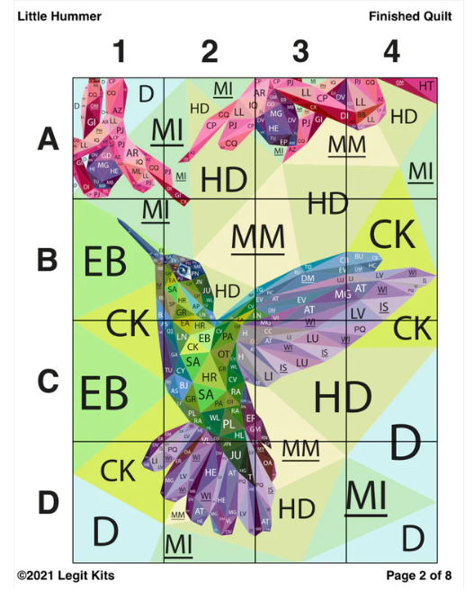 This comprehensive printed pattern includes everything needed to execute the design with confidence: full-color maps, detailed fabric and shade lists, step-by-step instructions, and complete pattern sections formatted to print on standard 8.5″ x 11″ foundation paper.